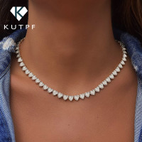 طقم مجوهرات سوار وقلادة تنس من المويسانيت للنساء ، قطع قلب ، سلسلة عنق ماسية ، قلادة بشهادة ، فضي ، قيراط واحد