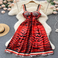 المرأة خمر فستان حفلة الصيف ليوبارد طباعة ثلاثي الأبعاد فساتين متوسطة الطول السيدات أنيقة خط عالية الخصر رداء طويل