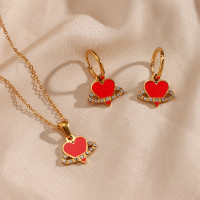 ه. ب. حجر الزركونيا المكعب الحسناء ، سحر قلب المينا ، أقراط الطوق ، قلادة الحب ، الفولاذ المقاوم للصدأ ، مجموعة مجوهرات القلب الأحمر