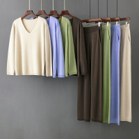المرأة طويلة الأكمام البلوز سترة الدعاوى ، ملابس رياضية غير رسمية ، الخامس الرقبة البلوفرات ، السراويل المرنة ، ملابس الإناث ، 2 قطعة مجموعات