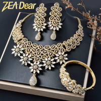 الأزياء والمجوهرات دبي بوهيميا الزركون 14 كيلو مطلية بالذهب سوار حلقة قلادة القرط الزفاف العروس مجموعات مجوهرات للنساء