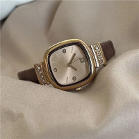 ساعة كوارتز نسائية مربعة من الجلد والماس ، ساعات عتيقة للسيدات ، ساعة يد ، هدايا ساعة ، علامة تجارية فاخرة ، أزياء