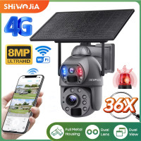 كاميرا SHIWOJIA 36X ZOOM 8MP 4G SIM تعمل بالطاقة الشمسية خارجية 360 ° كاميرات مراقبة لاسلكية تعمل بالبطارية WIFI مع لوحة شمسية PIR للرؤية الليلية