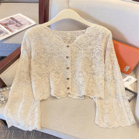 سترات نسائية صيفية موضة 2023 ، ملابس نسائية كبيرة الحجم ، كنزة صوفية رقيقة ، محبوكة بأزرار منسوجة ، قطع علوية فضفاضة