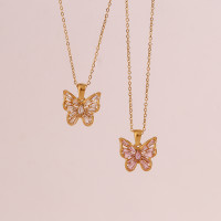 E.B.belle شعبية مقاومة للماء الفولاذ المقاوم للصدأ مشرق الوردي كريستال الزركون عقد بحلية متدلية على شكل فراشة قلادة للسيدات الفتيات النساء