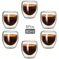 كوب زجاجي شفاف مزدوج الجدار ، عزل حراري ، أكواب شاي يدوية ، أكواب ويسكي ، كوب قهوة إسبرسو صغير
