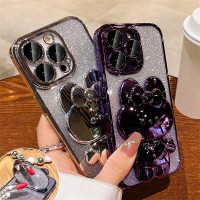 للطي أرنب مرآة لوضع مساحيق التجميل تدوير حامل جراب هاتف آيفون 15 14 13 12 11 برو ماكس XR XS MAX X 7 8Plus غطاء مقاوم للصدمات