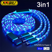 NNbilli-كابل إضاءة ليد متوهج لهاتف آيفون ، 3in 1 ، 3A شحن سريع ، مايكرو يو إس بي ، نوع سي ، آيفون ، سامسونج ، شيومي ، ريدمي ، هواوي ، ملحقات الهاتف