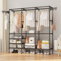 Double-Row Coat Rack Floor For Clothes And Shoes Household Storage Shelf Clothes Hanger Simple Assembly Large Wardrobe Hangers