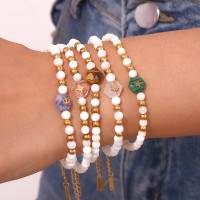 الأبيض سداسية الحجر الطبيعي مطرز سوار ، الفولاذ المقاوم للصدأ ، 18K مطلية بالذهب ، جودة القلب والمجوهرات ، E B بيل المتجر الرسمي