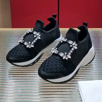 حذاء نسائي كاجوال بنعل سميك ، ساتان ، فاخر ، حجر الراين ، إبزيم مربع ، خفيف ، جري ، عالي الجودة ، مقاس كبير 34-42