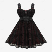 روسيغال-حجم كبير الدانتيل يصل عبر الكشكشة فستان Vintage للنساء ، فساتين بلا أكمام ، الأشرطة كبيرة الحجم ، طول الركبة ، الربيع ، الصيف