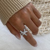 خاتم فتح بحر نجم البحر للنساء ، مطلية بالذهب 18 قيراط PVD ، مجوهرات مقاومة للماء ، مضادة للحساسية ، مقاومة للصدأ ، زركونيا بيضاء ، بسيطة