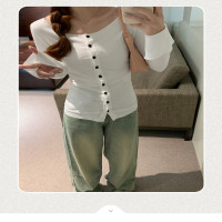 المرأة طويلة الأكمام المحاصيل الأعلى ، الفتيات القطن تي شيرت ، ضئيلة الإناث المحملة ، الأبيض ، Y2K الملابس ، مثير ، الخريف ، الربيع