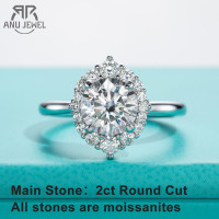 AnuJewel 2ct D اللون المويسانتي خاتم الخطوبة هالو 18 كيلو مطلية بالذهب رائع الفضة خاتم الزواج للنساء مجوهرات بالجملة