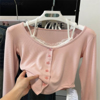 قمصان نسائية وردي نحيفة كلية حلوة موضة كورية ربيعية لينة مريحة مقصوصة تصميم 2023 حديث الوصول يوميا غير رسمي