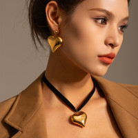 Youthway-الانتفاخ السمين القلب قلادة قلادة للنساء ، مجوهرات فريدة من نوعها ، الذهبي ، لون الصلب ، أسود ، حبل عريض ، سحر ، جديد