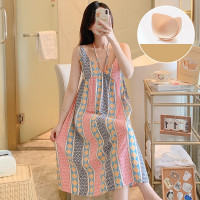 فستان نوم نسائي مثير بحمالة على الشاطئ ، ملابس نوم رقيقة من القطن الرايون ، ملابس نوم ببطانة صدر ، فساتين نوم نسائية مطبوعة