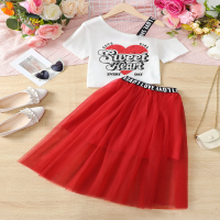 تي شيرت للفتيات بأكمام قصيرة وتنورة شبكية ، زي على الطراز الجامعي ، طقم ملابس أطفال ، طقم صيفي للفتيات ، 8-12 سنة ، 2 *