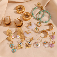 أقراط من الفولاذ المقاوم للصدأ للنساء ، الربط ، كبير ، ريشة صغيرة ، ورقة ، هيبوالرجينيك ، 18K مطلية بالذهب ، الديكور ، 316L