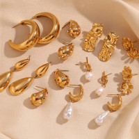 أقراط لؤلؤ المياه العذبة ، 316 لتر من الفولاذ المقاوم للصدأ ، لون ذهبي ، مجوف ، ناعم ، هلال ، زر عقدة ، ملون ، غير منتظم