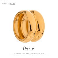 Yhpup أنيق الفولاذ المقاوم للصدأ الطبقات نسيج معدني خاتم Occident بسيط 18k مطلية بالذهب إصبع للنساء مجوهرات خواتم