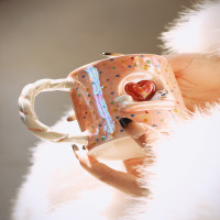 Ahunderjiaz-كوب قهوة سيراميك وردي ، أكواب زوجين حمرة ، كوب إفطار جرو جميل ، هدية عيد ميلاد ، طقم أدوات شرب منزلية ، 300-400 ،