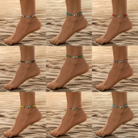 Salircon-سلسلة كاحل بوهيمية ، مختلط اللون ، حبة الأرز ، العصرية ، هندسية ، الحجر الطبيعي ، مجوهرات الشاطئ ، الصيف