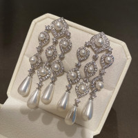 Bilincolor موضة فضي اللون الأبيض اللؤلؤ شرابة الباروك انخفاض القرط للنساء الزفاف