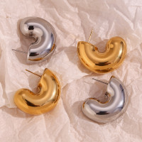 ه. ب. أقراط جميلة نصف دائرية مجوفة ، مجوهرات مطلية بالذهب عيار 18 قيراطًا مضادة للحساسية ، إكسسوارات من الفولاذ المقاوم للصدأ 316L