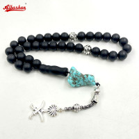 أسود ماتي الطبيعية أونيكس حجر Tasbih ، المعادن الصلاة حبة سوار ، الموضة التركية ، شرابات هدية