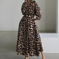 فساتين صيفية مثيرة للنساء موضة 2023 بطبعة الفهد بأكمام طويلة ركاب بولو سوينغ كبير فستان أنيق طويل ملابس