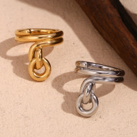 ه. ب. حسناء-حلقة خبز متشابكة بطبقتين ، زخرفة مطلية بالذهب عيار 18 ، مجوهرات ستانلس ستيل 316 لتر ، لون فضي