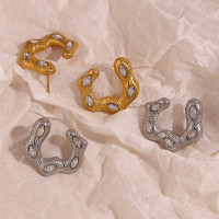 الحصان العين الزركون غير النظامية افتتاح موجة وأقراط ، 18K مطلية بالذهب الملحقات ، فضي اللون ، 316L الفولاذ المقاوم للصدأ والمجوهرات