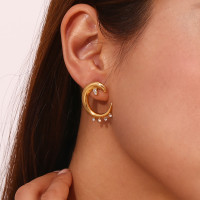 أقراط صغيرة على شكل قارب جوفاء للنساء ، خالية من تشويه ، 18K مطلية بالذهب الديكور ، الفولاذ المقاوم للصدأ ، ثلاثة طبقة