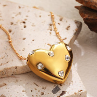 قلادات قلب زركون مطلية بالذهب للنساء ، فقاعة معدنية ناعمة ، قلادة حب كبيرة ، مجوهرات لامعة ، هدية للحفلات