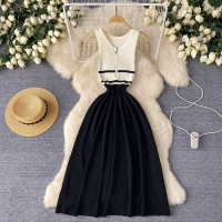س الرقبة فستان محبوك بلا أكمام ، خليط ضئيلة فساتين خط ، أزياء أنيقة خمر ، حزب شيك مثير ، الصيف