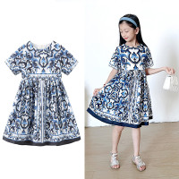 2023 الأطفال التنانير الربيع و الصيف الفتيات الكرتون صورة طباعة فستان طفل الأزرق والأبيض الخزف الحمالة تنورة