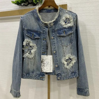 جاكيت دنيم نسائي قصير برقبة دائرية ، معطف جينز مطرز بالخرز ، ملابس خارجية نسائية ، صناعة ثقيلة ، موضة ، ربيع ، خريف ، جديد ،