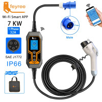 Feyree شاحن سيارات كهربائية محمول Type1 Wallbox j1772 المقبس 32A 7KW 1 المرحلة APP التحكم EVSE صندوق شحن محمول للسيارات الكهربائية