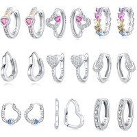 أقراط طوق من الفضة الإسترليني للنساء ، دائرة الزركون ، سلسلة على شكل حب ، مجوهرات رائعة ، إكسسوارات هدايا ، موضة جذابة ، S925