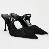 أحذية البغال بكعب عالٍ للسيدات مثير بمقدمة مدببة 2024 صنادل نسائية صيفية كلاسيكية شبكية مجوفة قابلة للتنفس