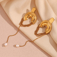 سلسلة معدنية لؤلؤة شرابة انخفاض الأقراط للنساء ، نصف دائري ، مقاوم للماء 18K مطلية بالذهب الديكور ، 316L الفولاذ المقاوم للصدأ