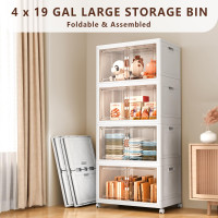 4 عبوات من صناديق تخزين قابلة للتكديس سعة 19 جالونًا، صناديق تخزين قابلة للطي مع غطاء لمنظمي الخزانة وصندوق تخزين قابل للطي للتخزين
