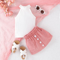 الحد الأدنى الأبيض أعلى حفرة الرسن الشريط وتنورة الوردي ، بدلة عادية لطفلة ، لينة ومريحة ، بارد ، 1 إلى 4 سنوات ، الصيف ، 2