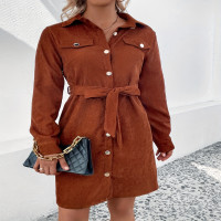 حزام خصر نسائي أنيق بأزرار ، فستان بياقة فليب ، الأوروبي وأمريكي عبر الحدود