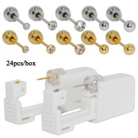 24 قطعة/صندوق المتاح سلامة الأذن ثقب جهاز العقيمة الحافة كريستال مربط لا شارب هيئة ثقب المجوهرات مناسبة الطفل