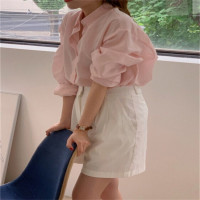 بلوزة نسائية كلاسيكية بأكمام طويلة كبيرة فضفاضة تناسب بلوزة بيضاء طويلة ، قميص غير رسمي ، قمم الصيف والربيع