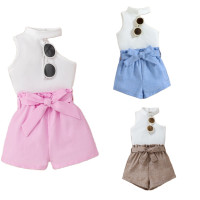 2-6 سنة الصيف ملابس الأطفال فتاة صغيرة الدعاوى أكمام واحد الكتف قبالة الكتف بلوزات وحزام السراويل 3 قطعة مجموعة