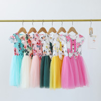 طفل رضيع الفتيات توتو فستان بلا أكمام التطريز الأزهار طباعة تول فستان فتاة صغيرة الأميرة فساتين مع زهرة عقال